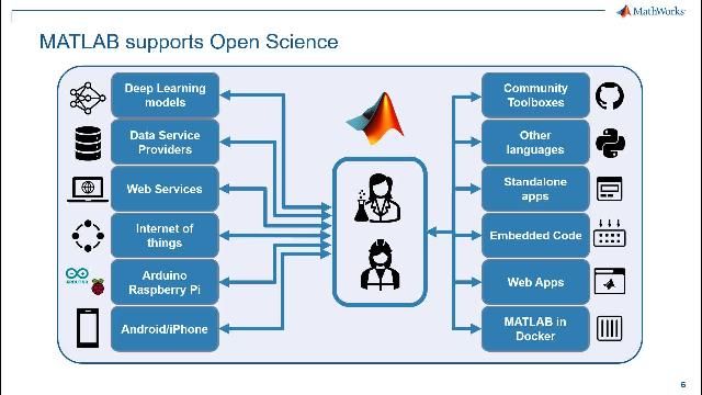 MATLAB は、オープンサイエンスで使用されるさまざまなサービスでアクセスが可能です。