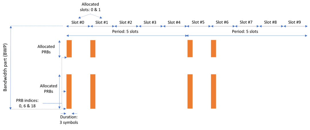 次の図は、CORESET のいくつかのパラメーターの意味を示しています。