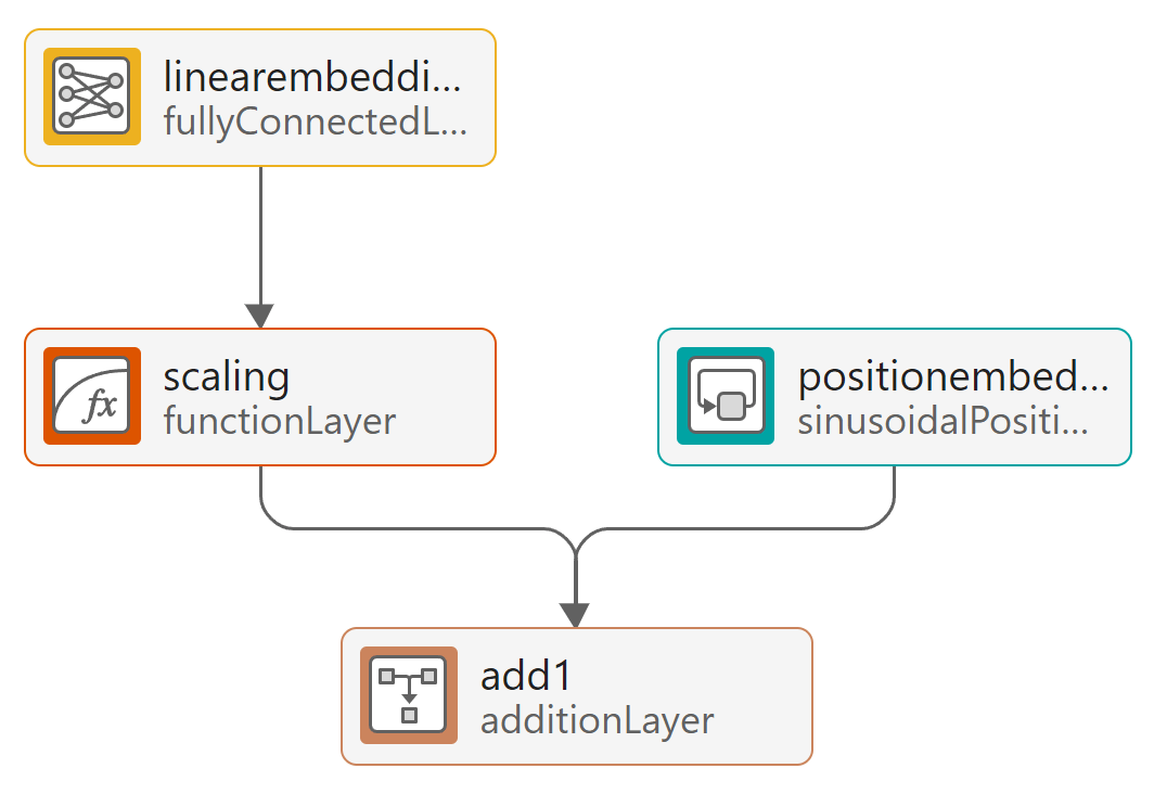 The linear embedding layer converts the channel response across the transmit antennas to a dense learnable representation of size modelDimension. The positional encoder injects information about the index of the channel response at each transmit antenna with respect to all antennas in the input array.