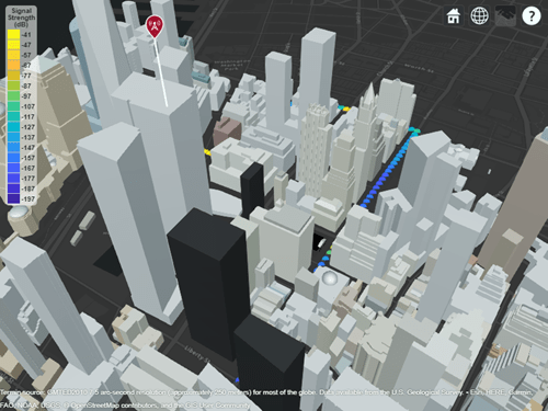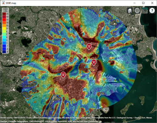 propagationData オブジェクトを使用して、ジオロケートされた伝播データをインポートおよび可視化します。測定データはパス損失データ、信号強度の測定値、S/N 比 (SNR) データ、またはセルラー情報にすることができます。