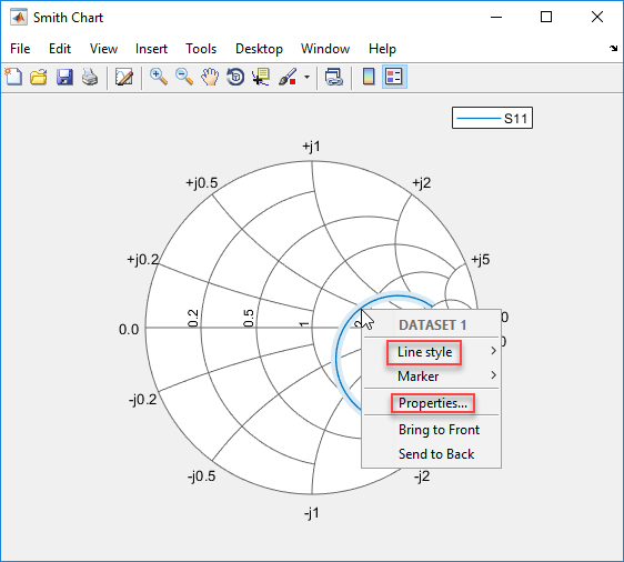 プロパティの一覧については、SmithPlot Properties (RF Toolbox) を参照してください。