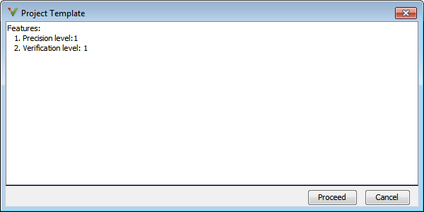 精度レベル 1 および検証レベル 1 で Code Prover 解析を実行する Code Prover 構成テンプレートを作成するとします。詳細は、以下を参照してください。