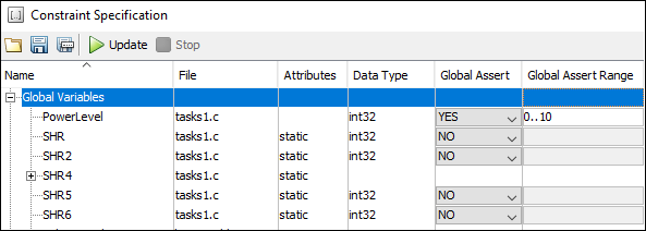 </file>グローバル変数に対する制約を指定して、制約に違反しているかどうかを Code Prover 解析時にチェックするには、次のようにします。