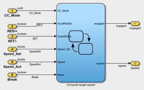} ExtU_CruiseControl_RP_T;// のインスタンスがあります。モデル内の対応する場所に移動するには、コード コメント内の '<Root>/RES//+' をクリックします。このコメントが、/ 文字を含む入力変数 RES/+ に由来することがわかります。