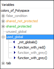 たとえば、used_global は 4 回アクセスされているグローバル変数です。内訳は、初期化中に 1 回、関数 function_with_red 内に 1 回、および関数 function_with_grey 内で 2 回です。