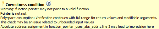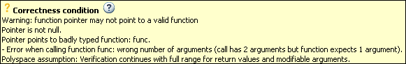 コードの前方で発生する Polyspace 前提条件にオレンジ チェックをトレースできるかどうかを確認します。前提条件があてはまらない場合、結果またはコードにコメントまたは正当化情報を追加します。Polyspace ユーザー インターフェイスでのバグ修正または正当化による結果への対処またはPolyspace Access でのバグ修正または正当化による結果への対処 (Polyspace Access)を参照してください。