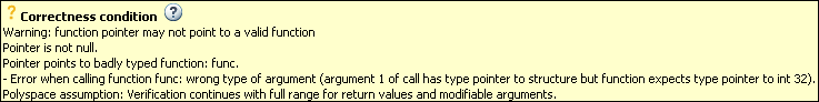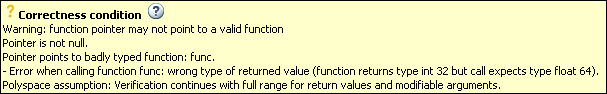 すべてのチェックに適用される一般的なワークフローについては、Polyspace デスクトップ ユーザー インターフェイスでの Code Prover の結果の解釈またはPolyspace Access Web インターフェイスでの Code Prover の結果の解釈 (Polyspace Access)を参照してください。