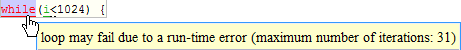 ループにランタイム エラーが含まれている場合のループの反復回数。Polyspace はランタイム エラー発生時に実行が停止すると見なすため、この数値からどのループ反復にエラーが含まれているのかを特定できます。