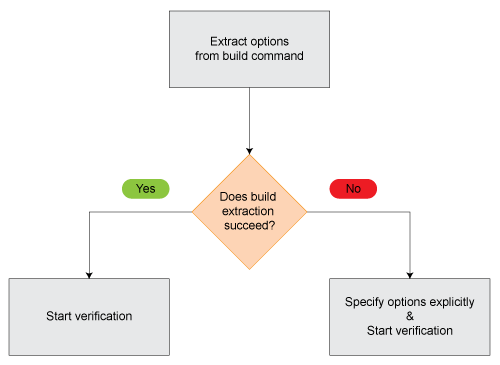 検証の前に、ソース コードの言語 (C または C++)、ターゲット プロセッサ、およびコードのビルドに使うコンパイラを指定します。場合によっては、コンパイラの動作をエミュレートするために、追加のオプションを指定しなければならないことがあります。