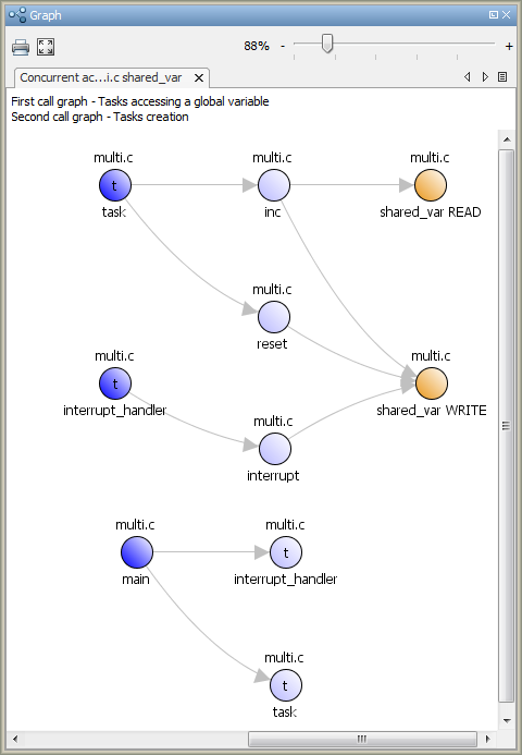 は、グローバル変数に対して読み取りおよび書き込みアクセスをそれぞれ実行している関数を示します。同様に、読み取りおよび書き込みアクセスを実行しているタスクは、シンボル