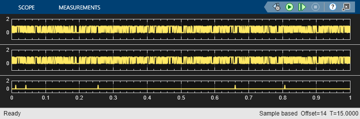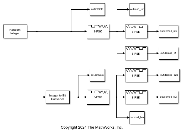 M-FSK Demodulator Baseband ブロックは、M-ary 周波数偏移変調 (M-FSK) 手法を使用して変調された信号を復調します。入力と出力は離散時間信号です。