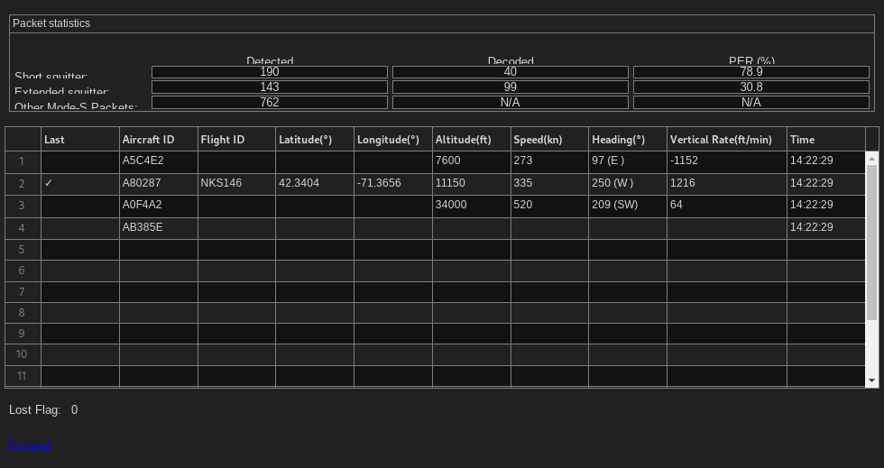 メッセージ パーサーが、[ 2 ] で説明されているパケット タイプに従って、生のビットからデータを抽出します。この例では、短スキッタ パケットと、飛行速度、識別情報および飛行位置データを含んだ拡張スキッタ パケットを解析できます。