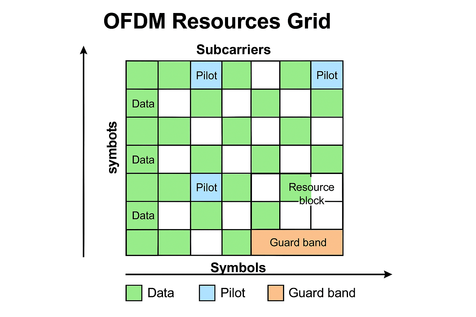 • Green: Data symbols used for transmitting user information.