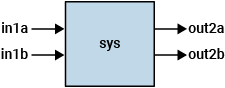 % sys1: 4-output, 2-input sys1 = rss(4,4,2); sys1.InputName = ["in1a","in1b"]; sys1.OutputName = ["out1a","out1b","out1c","out1d"]; % sys2: 2-output, 3-input sys2 = rss(3,2,3); sys2.InputName = ["in2a","in2b","in2c"]; sys2.OutputName = ["out2a","out2b"];