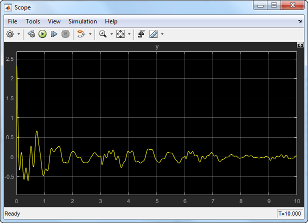 以前実行したように閉ループ システムのインパルス応答をシミュレートします。応答は安定し、大きな遅延がありながらも遅延のない応答と同様になりました。