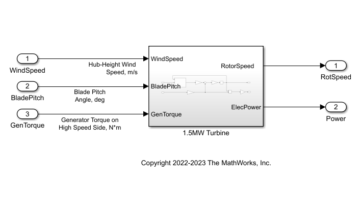 io = [linio('WindTurbineOpenLoop/WindSpeed',1,'in'); linio('WindTurbineOpenLoop/BladePitch',1,'in'); linio('WindTurbineOpenLoop/GenTorque',1,'in'); linio('WindTurbineOpenLoop/1.5MW Turbine',1,'out'); % RotorSpeed linio('WindTurbineOpenLoop/1.5MW Turbine',2,'out')]; % Power