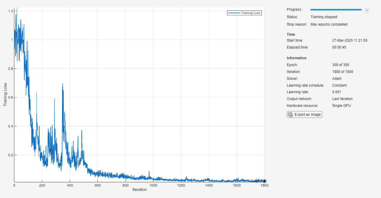 options = trainingOptions("adam", ... NormalizeTargets=true, ... MaxEpochs=300, ... Shuffle="every-epoch", ... Plots="training-progress", ... Verbose=false);