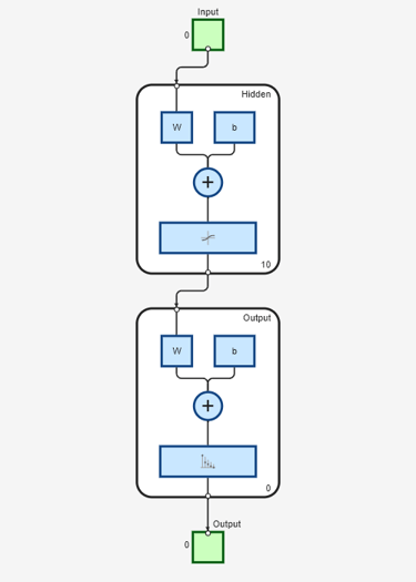この例では、10 個のニューロンがある 1 つの隠れ層を試します。一般的に、難しい問題ほど多くのニューロンが、そしておそらくは多くの層が必要になります。簡単な問題では、必要なニューロンが少なくなります。
