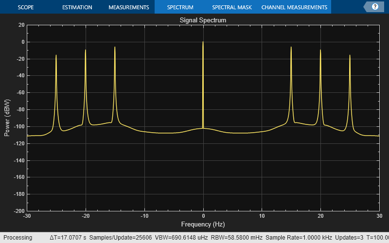 dsp.DCBlocker System object™ は、入力信号の各チャネル (列) から DC オフセットを削除します。時間の経過に沿って操作が実行され、DC オフセットが継続的に推定および削除されます。