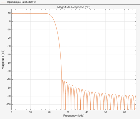 filterAnalyzer(firInterp,FilterNames="InputSampleRate44100Hz")