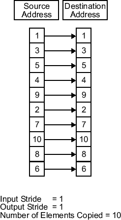 Specify the spacing between the elements when writing the output data. A stride value equal to one means that the generated code writes the input data sequentially to the destination in consecutive locations. When you add a stride value that is more than 1, the output data is stored not sequentially, but skips elements equal to the stride.