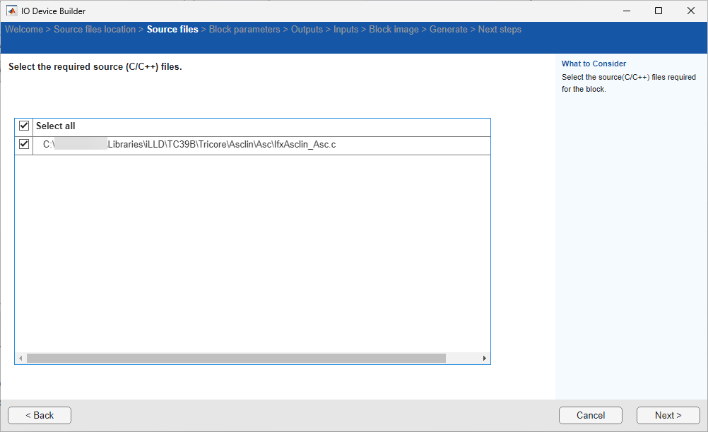 On the Next Steps page, the files generated are shown and the next steps to be performed are displayed. The generate files are created in a directory. This directory also includes a Dependencies folder that contains selected third-party source files. Simply copy these files and the folder to your desired location and integrate them into your Simulink project.