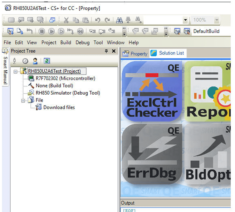 7. In the project tree, right-click RH850 Simulator (Debug Tool) and from the Using Debug Tool option, select RH850 E2.