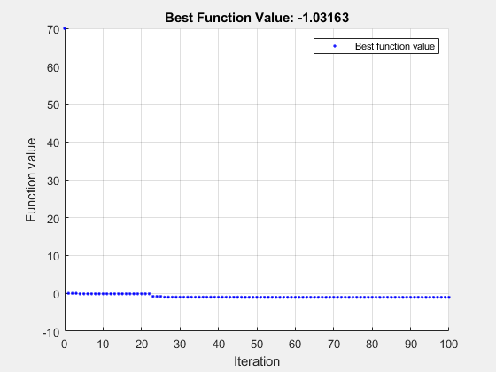 MinSampleDistance以内になるまで、手順 3 から続行します。その時点で、サロゲートからすべての適応ポイントを破棄してサロゲートをリセットし、スケールをリセットして、ステップ 1 に戻り、評価用のMinSurrogatePoints個の新しいランダム試行ポイントを作成します。
