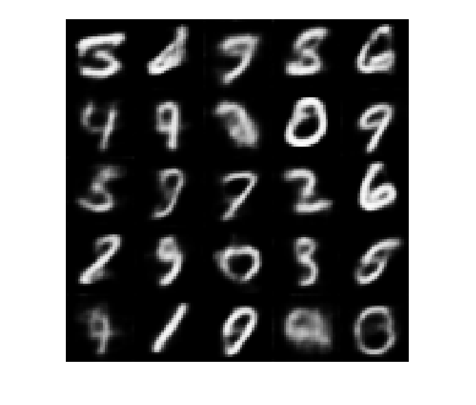 エントリポイント関数 generateVAE を評価して、数字イメージを生成し、結果をプロットします。