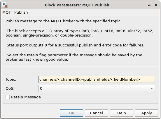 MQTT ブロックを使用した ThingSpeak でのメッセージのパブリッシュとサブスクライブ