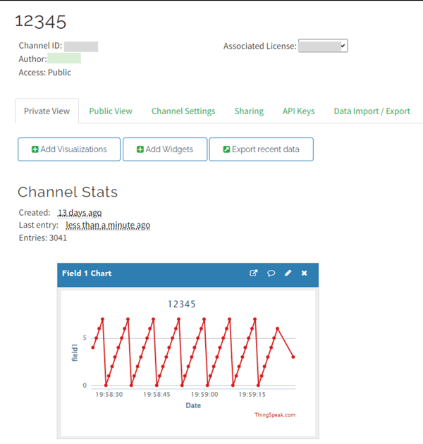 ThingSpeak ブローカーでのパブリッシュ済みデータの表示