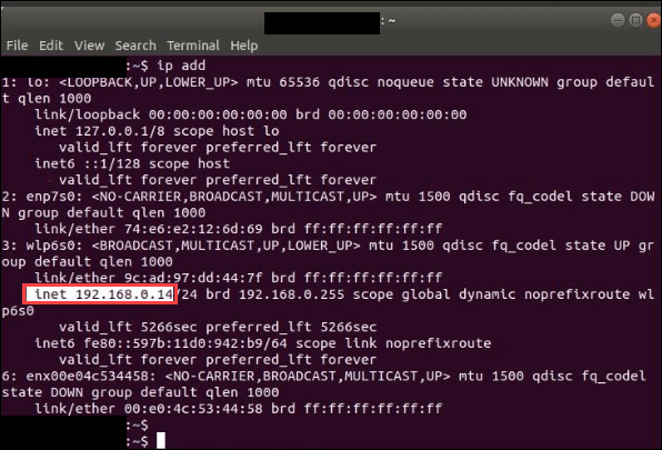 Linux® マシンで IP アドレスを見つけるには、次のようにします。