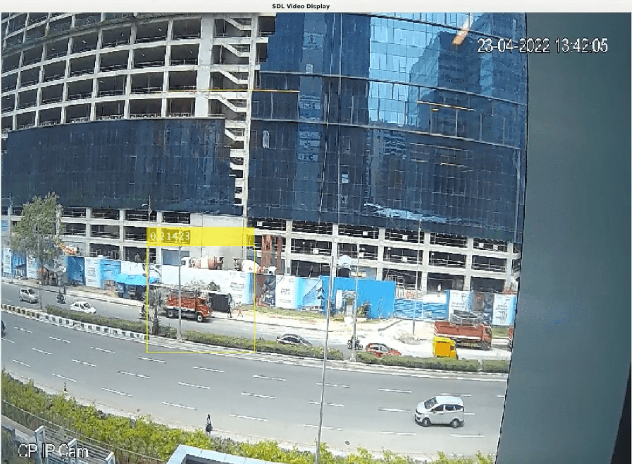 アプリケーションがターゲット上で起動すると、[SDL Video] ウィンドウが開き、IP カメラによってキャプチャされたビデオ ストリームの各フレームに対する車両検出結果が表示されます。