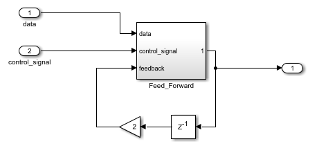 This example contains output pipelines to help optimize the speed of the design, but at the cost of introducing an extra cycle of latency for each pipeline. This additional latency is balanced during delay balancing so that the numerics and functionality of the algorithm are preserved. However, in a feedback loop, delay balancing requires you to model with latency in order to absorb the design delays to prevent a timing mismatch as a result of the pipeline optimizations.