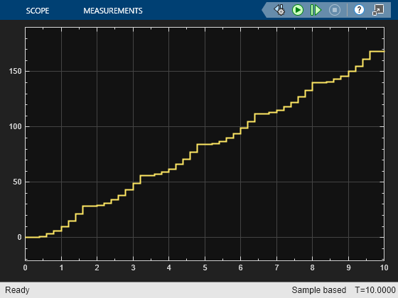 Removing the input and output pipelines removes the added latency to the generated model. The original and generated model are now functionally equivalent with no simulation mismatch. To compare the original and generated model scope outputs, generate HDL code.