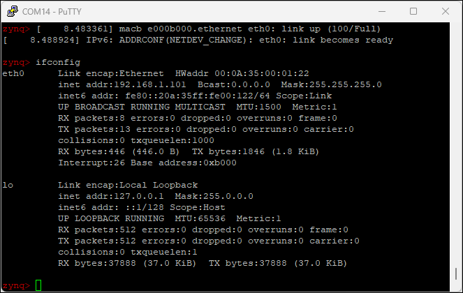 ボードをオンにすると、正常に起動してログインしたことが PuTTY™ ソフトウェアの外部コンソールに表示されます。これにより、ハードウェア ボードに Linux イメージが読み込まれたことを確認できます。