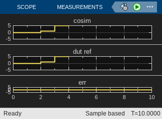 To verify the cosimulation model, this example uses Testing Frameworks. The test class testHDLCosimulation.m performs these actions: