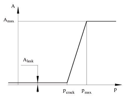 A(p)={Aleakfor p<=pcrackAleak+k·(ppcrack)for pcrack<p<pmaxAmaxfor p>=pmax