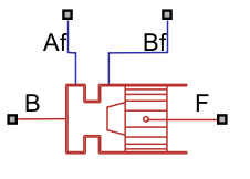 A Translational Motion Sensor (PB) block measures the distance of the gap between the plunger and the end cap, which is the distance between the locations of ports F and B.