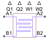 and are the mass flow rates into ports A1 and B1 or A2 and B2.