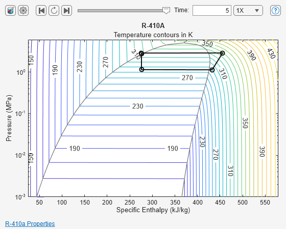 より高いシステム レベルで冷凍サイクルをモデル化する方法については、冷凍サイクル (システムレベル)の例を参照してください。