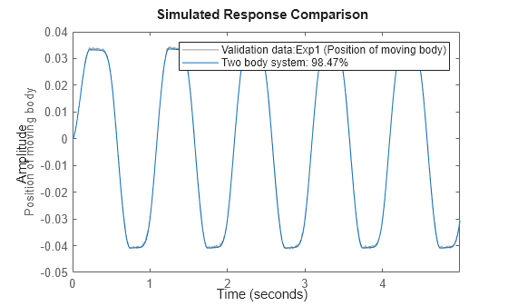 load('twobodiesdata'); z = merge(iddata(y1, u1, 0.005), iddata(y2, u2, 0.005), iddata(y3, u3, 0.005)); z.Name = 'Two body system'; z.InputName = nlgr.InputName; z.InputUnit = nlgr.InputUnit; z.OutputName = nlgr.OutputName; z.OutputUnit = nlgr.OutputUnit; z.Tstart = 0; z.TimeUnit = nlgr.TimeUnit;