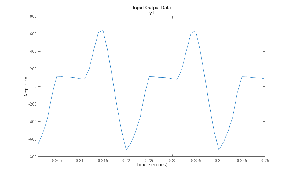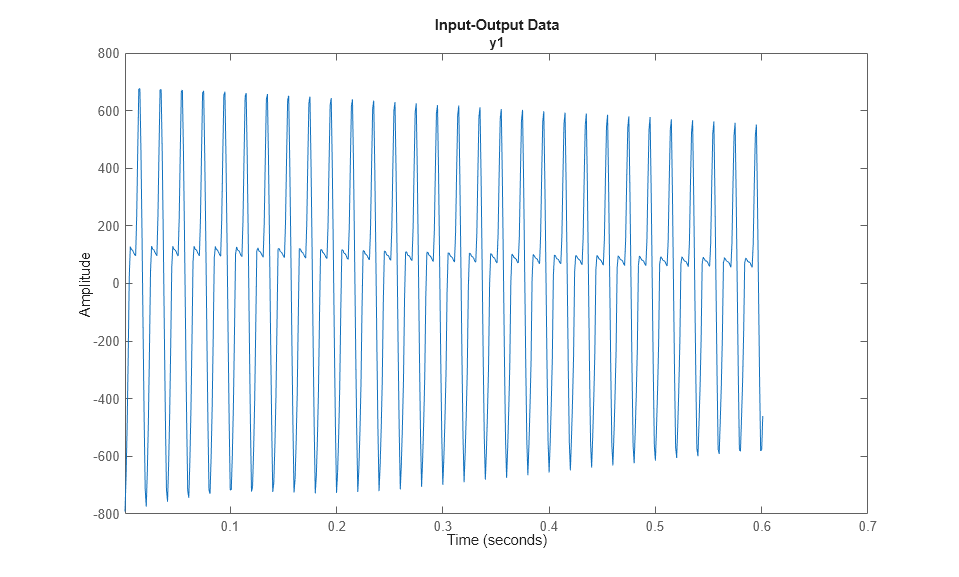 次に、電流データを使用して iddata オブジェクトを作成します。サンプル時間は 0.001 秒 (1 ms) です。