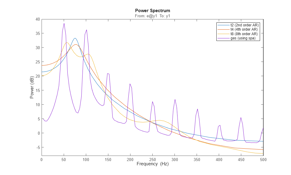 legend({'t2 (2nd order AR)','t4 (4th order AR)','t8 (8th order AR)','ges (using spa)'});