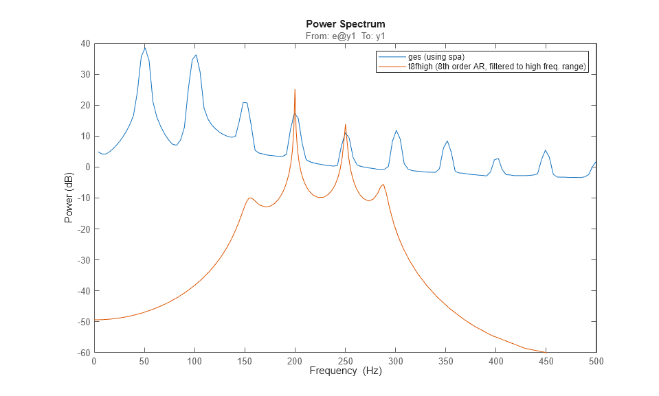 legend({'ges (using spa)','t8fhigh (8th order AR, filtered to high freq. range)'});