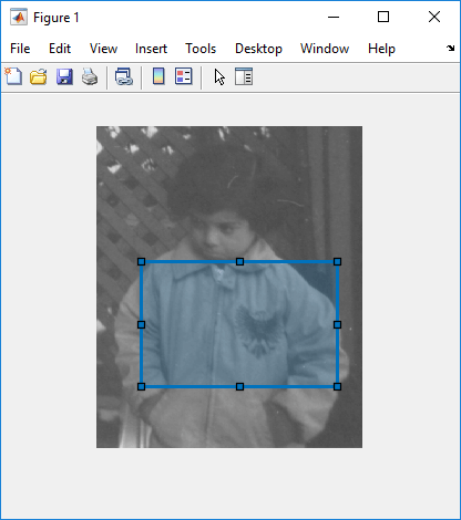 ROI の wait メソッドを呼び出します。これにより、ROI での操作が完了するまで、コマンド ラインがブロックされます。たとえば、ROI の移動、形状の変更、または回転 (回転を有効にした場合) を行うことができます。この例の場合、カーソルを ROI 内に配置し、イメージ上で ROI をクリック アンド ドラッグして新しい場所に移動します。完了したことを示すには、ROI をダブルクリックします。
