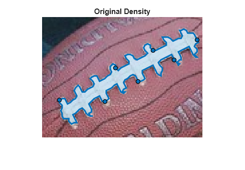 im = imread("football.jpg"); bw = im(:,:,1)>200; bw = bwareafilt(bw, 1); bloc = bwboundaries(bw,"noholes"); roipos = fliplr(bloc{1}); imshow(im) hfh = drawfreehand(Position=roipos);