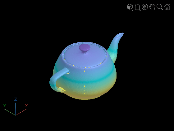 [ は、ポアソン再構成法を使用して入力点群 mesh,depth,perVertexDensity] = pc2surfacemesh(ptCloudIn,"poisson")ptCloudIn から表面メッシュを作成します。この関数は、再構成で使用される八分木の深さ depth と頂点密度 perVertexDensity も返します。