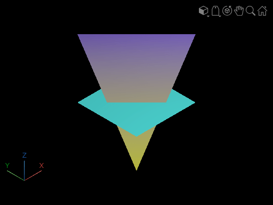 vertices =[0 0 0; 0 1 0; 1 0 0; 1 1 0; ... 0.5 0.5 -1; 0 1 1; 1 0 1]; faces = [1 2 3; 2 3 4; 5 6 7];
