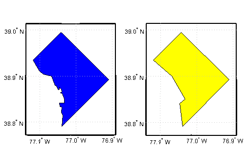 Compare the original and reduced borders of the District of Columbia from the shapefile usastatehi.shp.